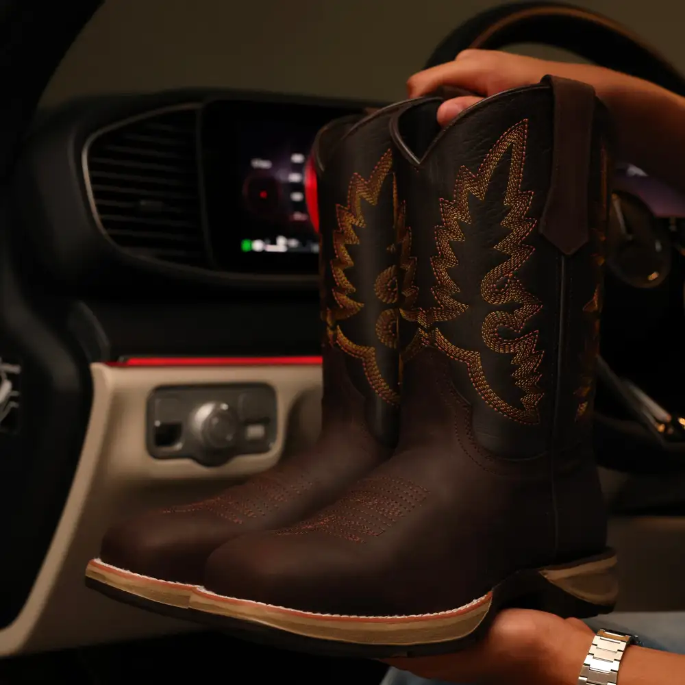 Chocolate Brown Leather Work Boots - Square Toe