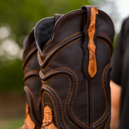 Matte Rustic Honey Pirarucu Leather Boots - Square Toe